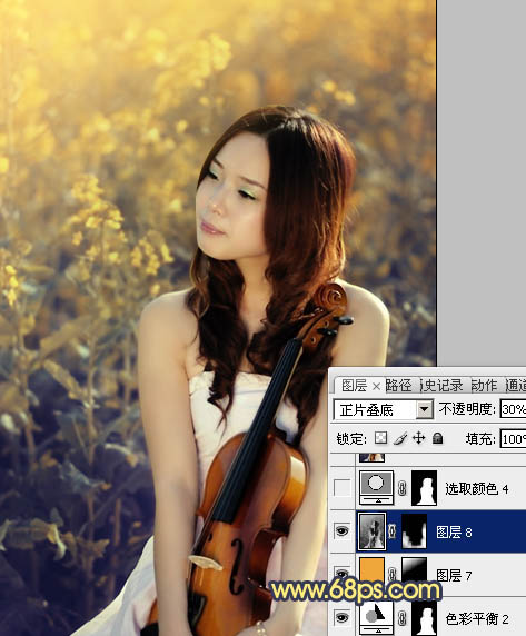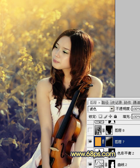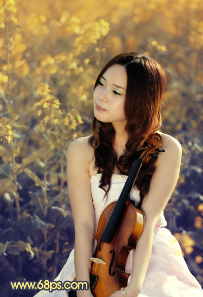 Photoshop调出菜田美女图片柔美的古典暖色调(6)