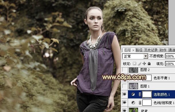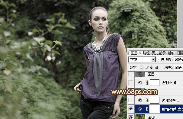 Photoshop调出外景人物图片流行的黄绿中性色(2)