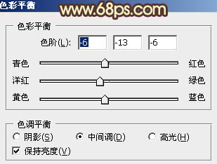 4、创建色彩平衡调整图层,对阴影及中间调进行调整,参数设置如图8,9,效果如图10。这一步加强一下背景的层次感和颜色。