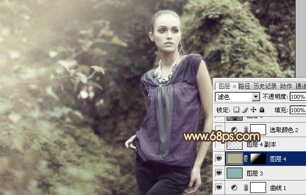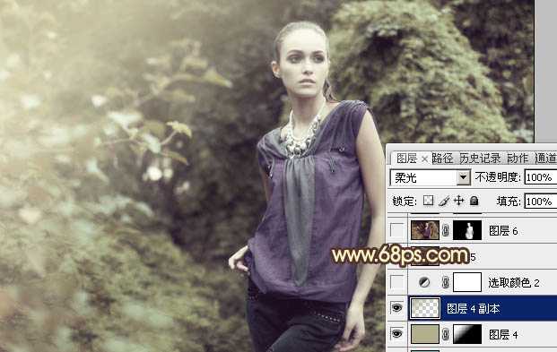 Photoshop调出外景人物图片流行的黄绿中性色(5)