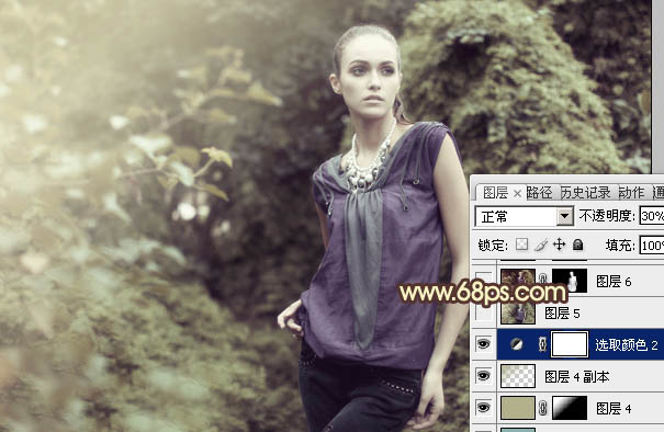 Photoshop调出外景人物图片流行的黄绿中性色(6)