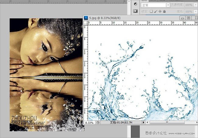 8、然后在打开水滴素材添加在画面的右下角,让画面更加生动给读者一些联想的空间。