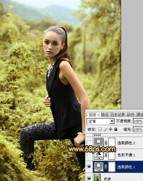 Photoshop调出树林模特图片柔美的青褐色(2)