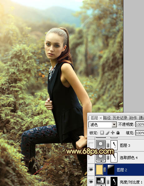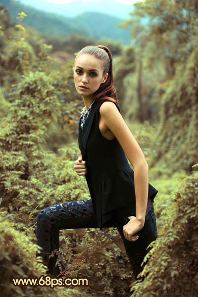 Photoshop调出树林模特图片柔美的青褐色(6)
