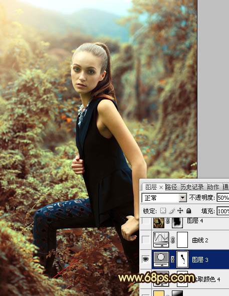 Photoshop调出树林模特图片柔美的青褐色(8)