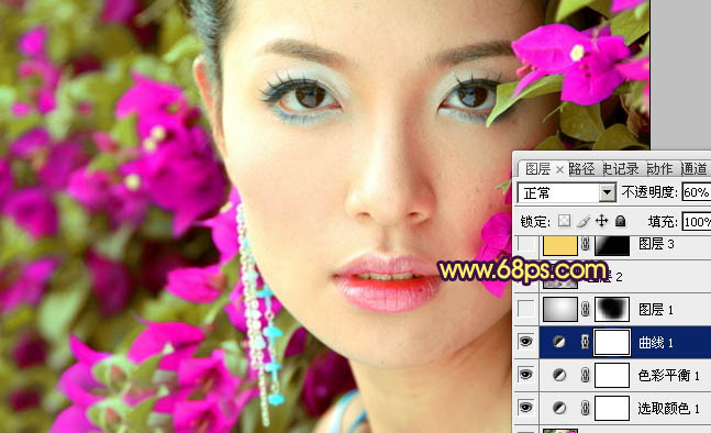 Photoshop调出特写人物图片柔美的紫黄色(4)