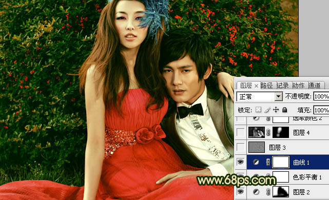 5、创建曲线调整图层,对红、蓝进行调整,参数设置如图15,16,效果如图17。