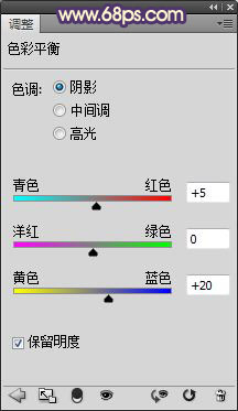 3、执行:图像-模式-RGB模式,选择不拼合图层。并为其创建色彩平衡调整图层,参数如图,效果如图。