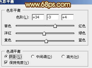 2、创建色彩平衡调整图层,对阴影、中间调、高光进行调整,参数设置如图4 - 6,效果如图7。这一步是给背景增加一些青蓝色。
