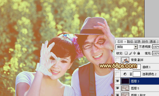 Photoshop调出外景情侣图片柔美的淡黄色(5)