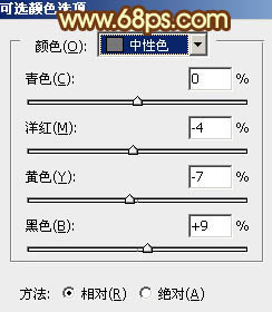 7、创建可选颜色调整图层,对红,黄,中性色进行调整,参数设置如图12 - 14,效果如图15。这一步把画面的主色调暗一点。