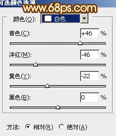 11、调出人物选区,创建可选颜色调整图层,对红、黄、白进行调整,参数设置如图21 - 23,效果如图24。
