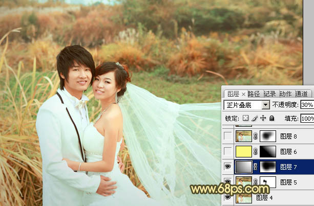 Photoshop调出外景婚片柔美的粉橙色(6)