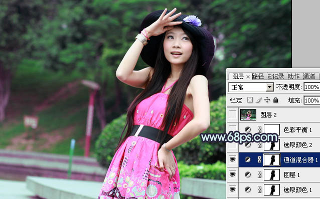 Photoshop调出外景人物图片甜美的暗青色(3)