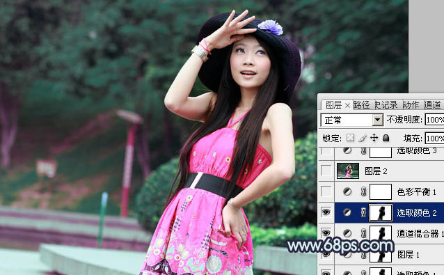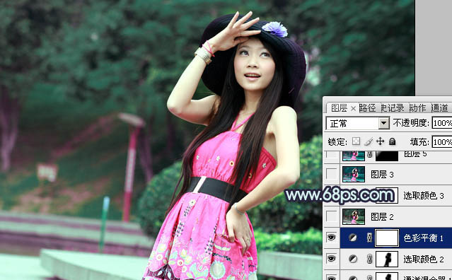 Photoshop调出外景人物图片甜美的暗青色(4)
