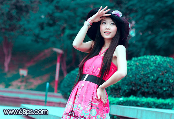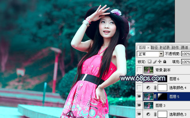 Photoshop调出外景人物图片甜美的暗青色(7)