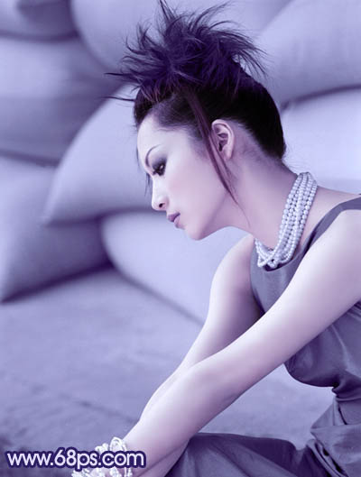 Photoshop调出室内美女图片经典淡蓝色(7)