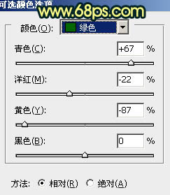 1、打开原图素材,创建可选颜色调整图层,对黄,绿,青进行调整,参数设置如图1 - 3,效果如图4。这一步是把画面的黄色和绿色对比加大。