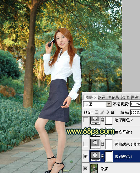 Photoshop调出树林人物图片柔美的暗青色(2)