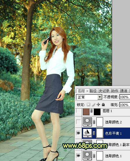 Photoshop调出树林人物图片柔美的暗青色(3)