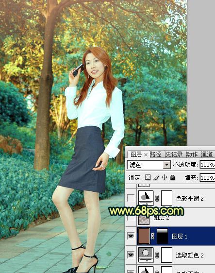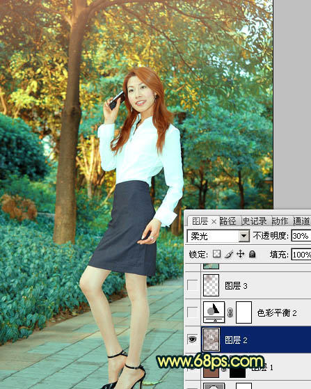 Photoshop调出树林人物图片柔美的暗青色(5)