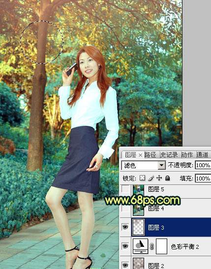 Photoshop调出树林人物图片柔美的暗青色(7)