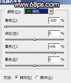 1、打开原图素材,创建可选颜色调整图层,对黄,绿进行调整,参数设置如图1,2,效果如图3。这一步是把图片中的滤色转为橙色。