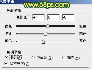5、创建色彩平衡调整图层,对阴影,高光进行调整,参数设置如图12,13,效果如图14。这一步加强图片的明暗对比和层次感。