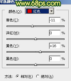 6、创建可选颜色调整图层,对红,黄,白进行调整,参数设置如图15 - 17,效果如图18。