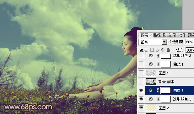 6、按Ctrl + J 把当前可选颜色调整图层复制一层,不透明度改为:50%,效果如下图。