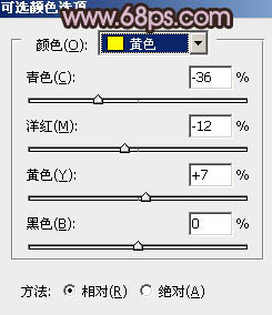 12、创建可选颜色调整图层,对黄,白进行调整,参数设置如图23,24,效果如图25。