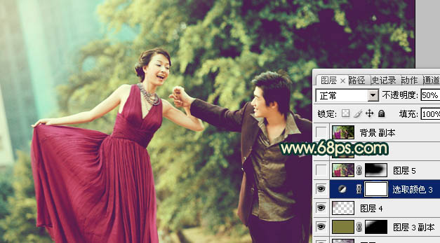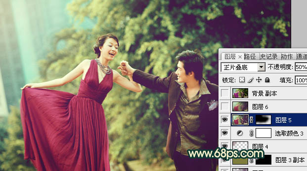 11、新建一个图层,按Ctrl + Alt + Shift + E 盖印图层。混合模式改为“正片叠底”,不透明度改为:50%,按住Alt键添加图层蒙版,用白色画笔把边缘部分擦出来,给图片加上暗角,大致效果如下图。