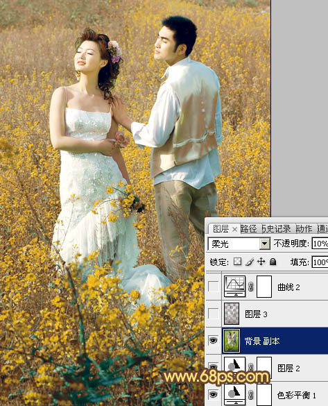 Photoshop打造柔和的金色花朵背景婚片(5)