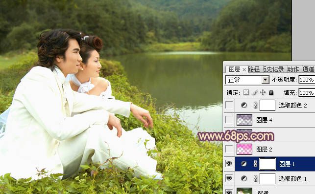 Photoshop调出湖景婚片甜美的紫黄色(3)