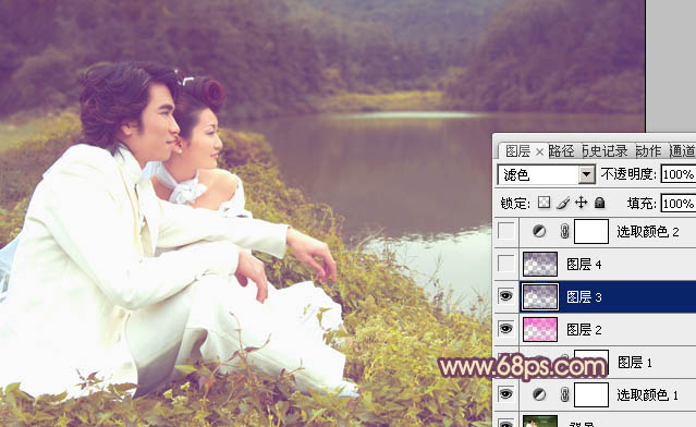 Photoshop调出湖景婚片甜美的紫黄色(4)