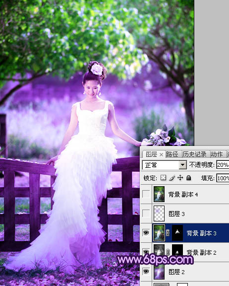Photoshop调出树林美女婚片唯美的绿紫色(8)