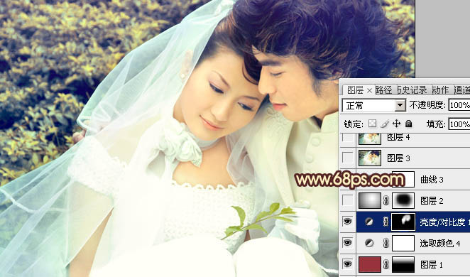 Photoshop调出外景婚片淡淡的黄绿蜜糖色(7)