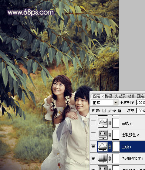 Photoshop调出树林婚片淡雅的中性黄青色(4)