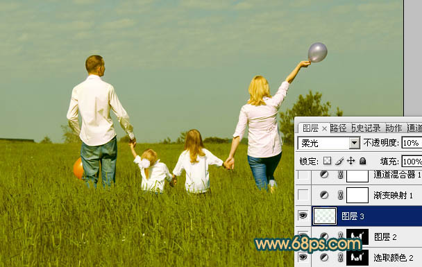 6、按Ctrl + Alt + ~ 调出高光选区,新建一个图层填充颜色:#F0FDF1,混合模式改为“柔光”,不透明度改为:10%,效果如下图。