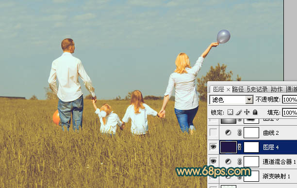 9、新建一个图层,填充颜色:#241846,混合模式改为“滤色”,效果如下图。这一步给画面增加一些蓝色。