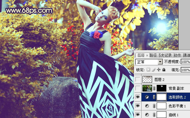 Photoshop调出树林模特图片鲜艳的橙色调(6)