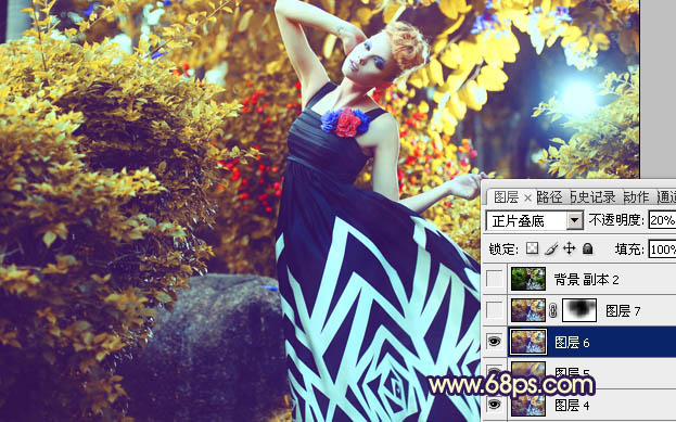 11、新建一个图层,盖印图层。混合模式改为“正片叠底”,不透明度改为:20%,效果如下图。