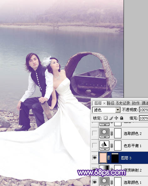 Photoshop调出江景婚片纯美的蓝紫色(4)