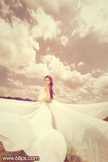 原图素材色彩构成比较少,天空蓝色比例较大。处理的时候只需改变天空的颜色就可以改变整体颜色。主色确定后,局部可以按照自己的喜欢渲染颜色即可。