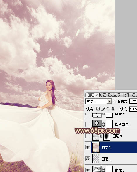 Photoshop调出外景婚片甜美的粉褐色(4)