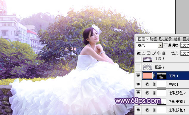 Photoshop调出美女婚片甜美的紫绿色(5)