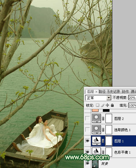 2、按Ctrl + J 把当前色彩平衡调整图层复制一层,不透明度改为:20%,效果如下图。