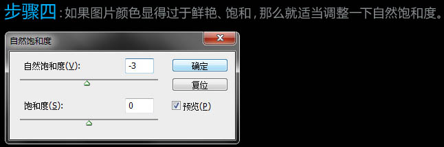 4、如果图片颜色显得过于鲜艳、饱和那么就适当调整一下自然饱和度。