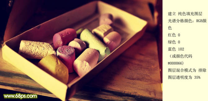 5、创建纯色调整图层,颜色设置为:#000066,图层混合模式改为“排除”,不透明度改为:35%,效果如下图。