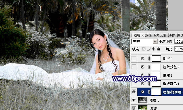 Photoshop调出外景婚片斑斓的暗蓝色(2)